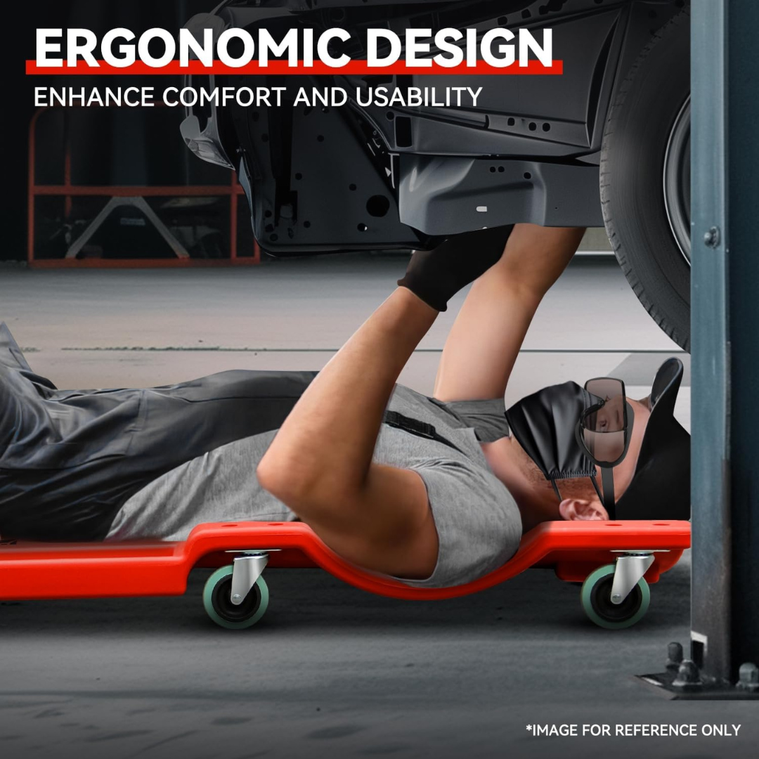 Movilidad Superior con 6 Ruedas Giratorias: Equipada con seis ruedas giratorias de 2 pulgadas, fabricadas en materiales de alta resistencia. Esta configuración asegura una maniobrabilidad de 360 grados, permitiendo al usuario desplazarse con total facilidad y precisión debajo del vehículo.