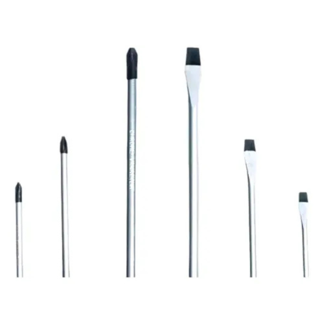 Phillips: PH0x75mm, PH1x75mm, PH2x38mm (stubby), PH2x100mm, PH3x150mm, PH3x200mm.