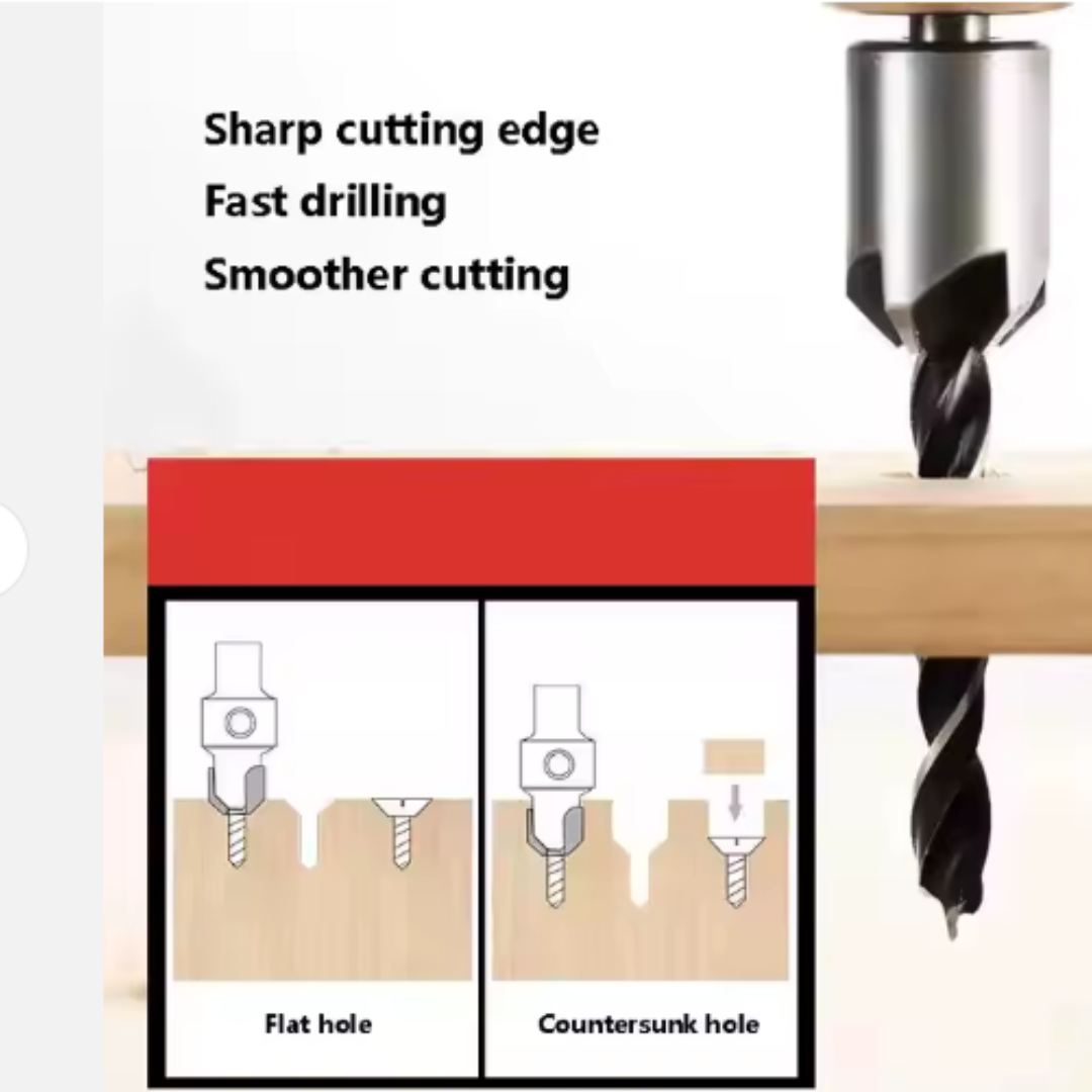 🔧 Profundidad Ajustable y Personalizable: El avellanador se puede ajustar a lo largo de la broca para controlar con precisión la profundidad del avellanado. Simplemente afloja el tornillo prisionero, ajusta a la altura deseada y aprieta.