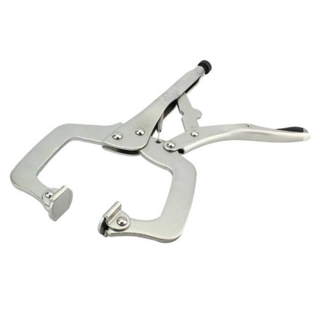 Diseño de Garganta Profunda (Tipo C): La forma de "C" de sus mordazas ofrece una mayor profundidad y alcance en comparación con los playos de presión estándar, permitiendo sujetar piezas de formas irregulares o llegar más allá de los bordes.