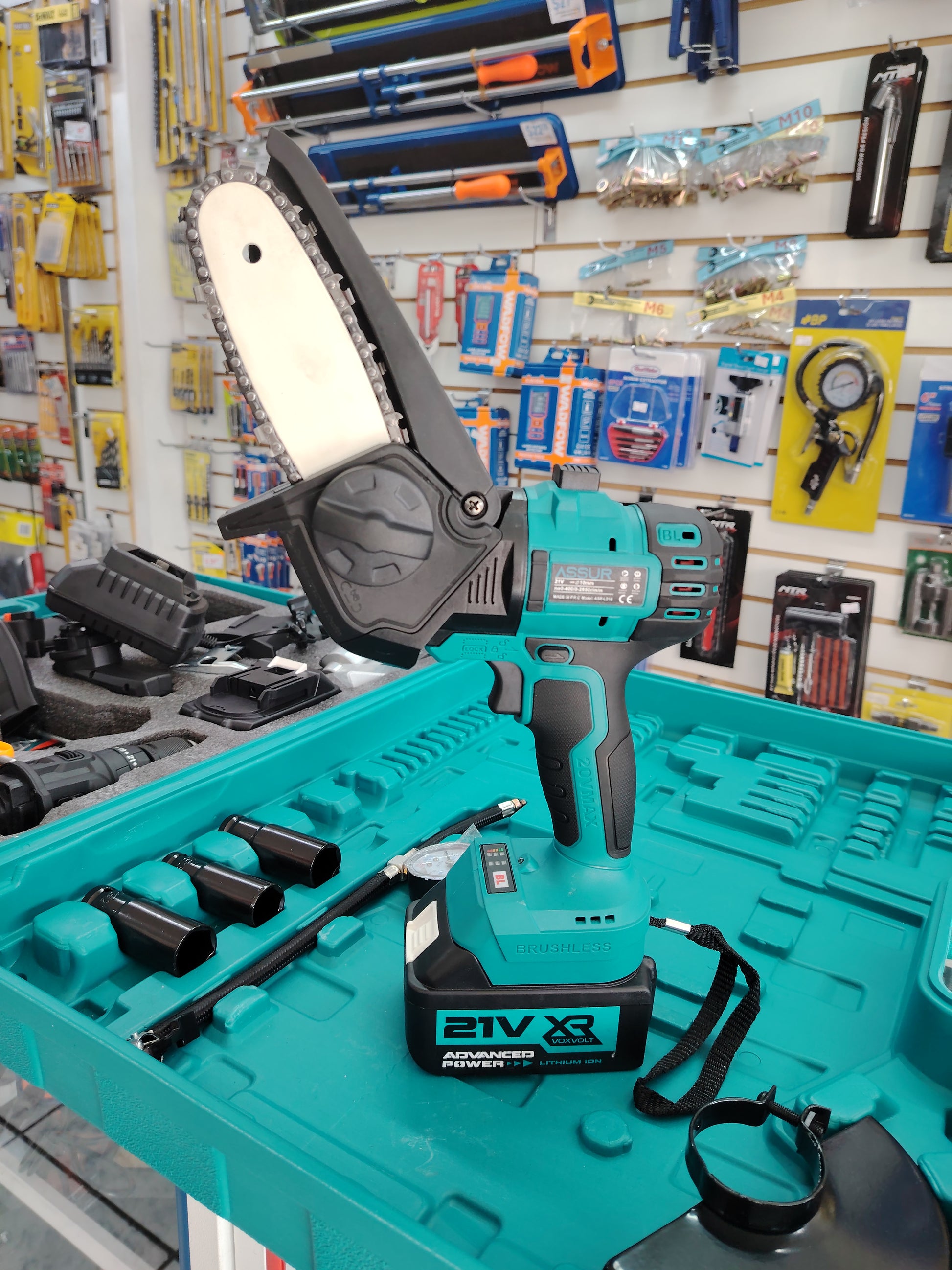 El Taladro Inalámbrico 21V Assur 7 en 1 es la herramienta definitiva para quienes buscan potencia, versatilidad y practicidad en un solo equipo. Gracias a su sistema de cabezales intercambiables, puedes transformar la misma máquina en diferentes herramientas eléctricas según lo necesites.
