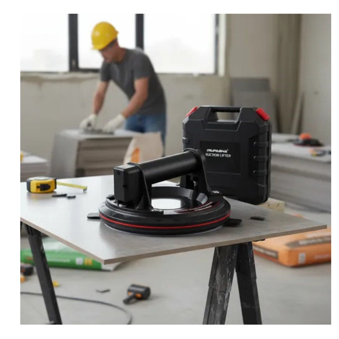 Diseñada para levantar y manipular materiales pesados de hasta 150 kilogramos, ideal para vidrios, cerámicas, mármoles, paneles metálicos, y otras superficies lisas y no porosas.